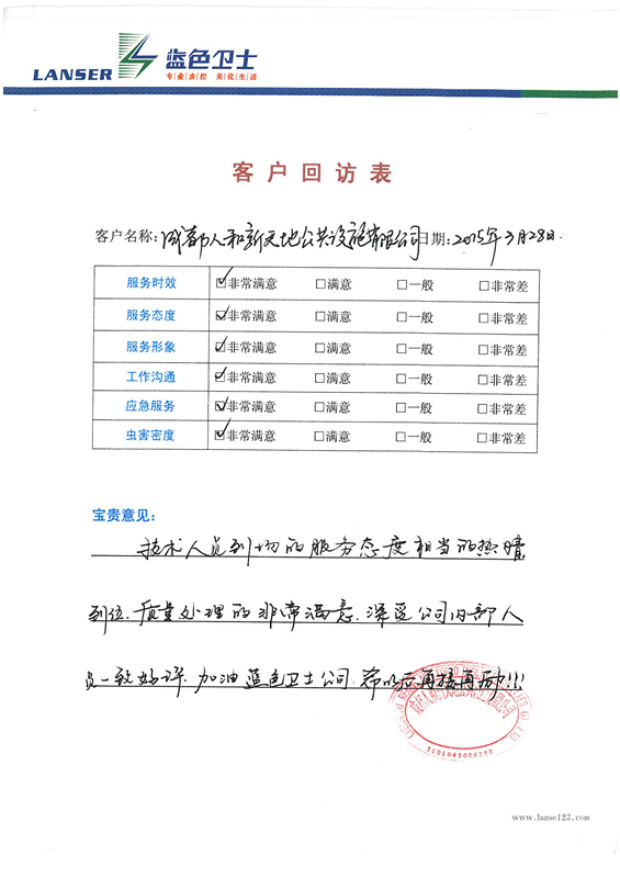 通過合作,對(duì)四害的消殺控制的很好,符合項(xiàng)目品質(zhì)要求!