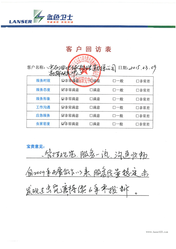 • 中石油物探公司的回訪評(píng)價(jià)